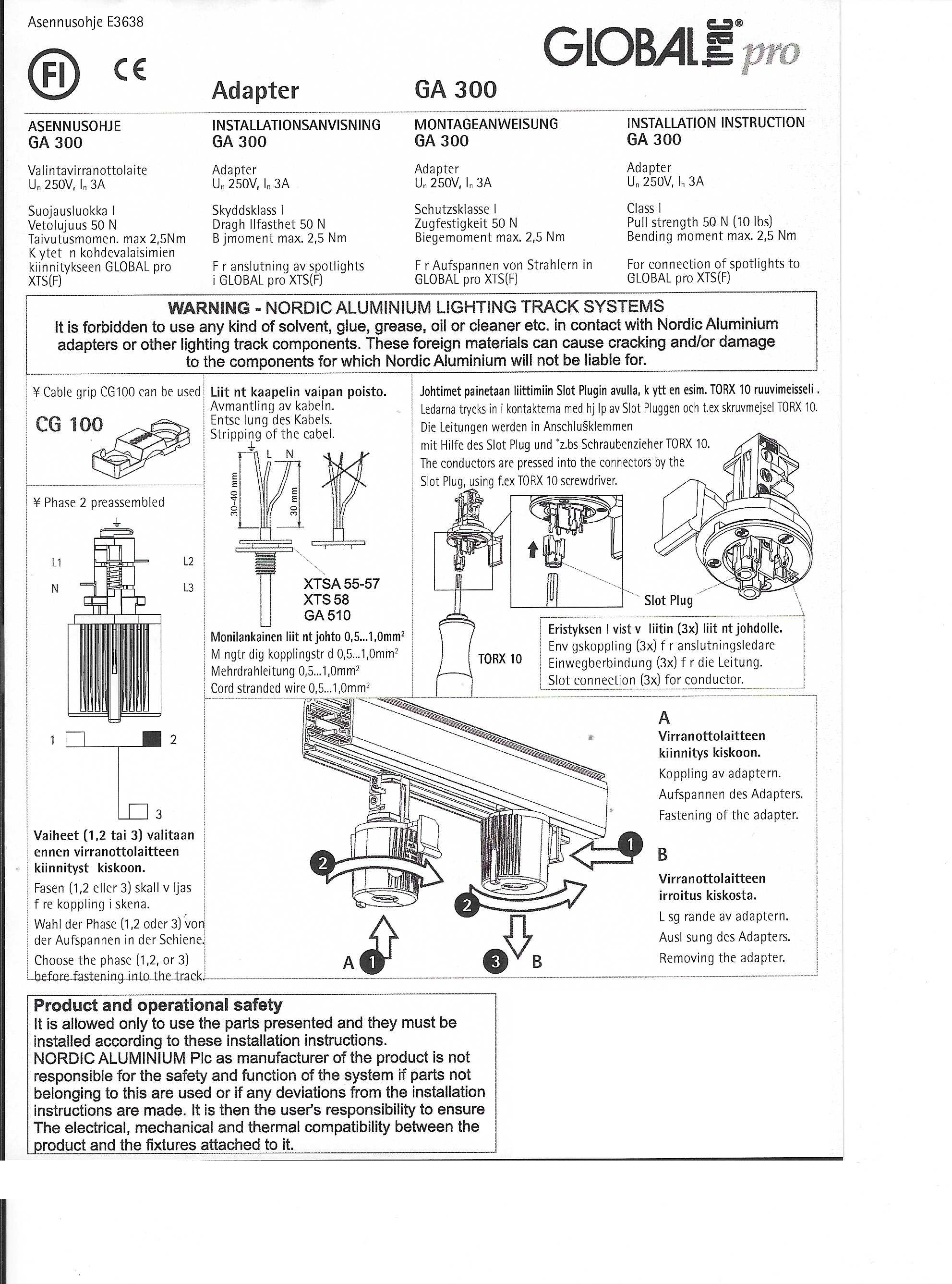 ERCO 79300 Einspeisung für 3 Phasen Stromschiene Weiss Schutzleiter Rechts