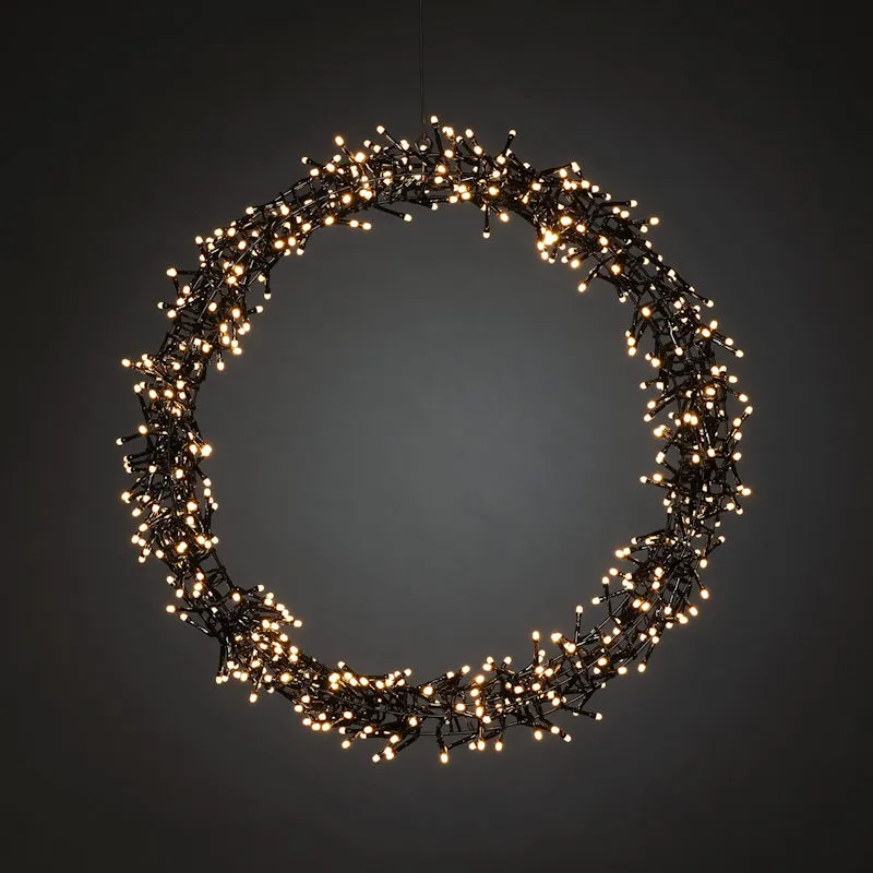 Lichtkranz aus Metall mit 600 bernsteinfarbenen LED- gefrostete LED Bernsteinfarben, so der Hersteller ist ein warmweiss, das ein onrange-gelben Licht ausstrahlt. Dabei sind es Mircro LED, die eine gefrostete Kappe haben. Der Kranz ist 50 cm im Durchmesser und das Licht der LED erstrahlt so hell, das sich in Innenbereichen ziemlich viel Licht verteilt. Über einen Taster am Steckernetzteil ist die Helligkeit in Stufen einstellbar. Zudem kann man am Steckernetzteil einen Timer einstellen. Die LED sind nicht austauschbar. Die Stromversorgung erfolgt über ein Steckernetzteil Technische Daten Abmessungen 50 cm Durchmesser Material: Metall Licht: 600 LED Kabel: Schwarz Schutzart IP44 - Innen und Aussen Fernbedienung: Nein Zuleitung 5 Meter Sensor: Nein Timer: Ja 8/16 Dimming: ja Steckernetzteil 30 V