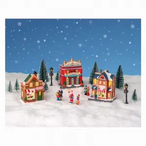 Lumineo 485524 Weihnachten Winterlandschaft Dorf Set mit Häusern Bäumen und Figuren