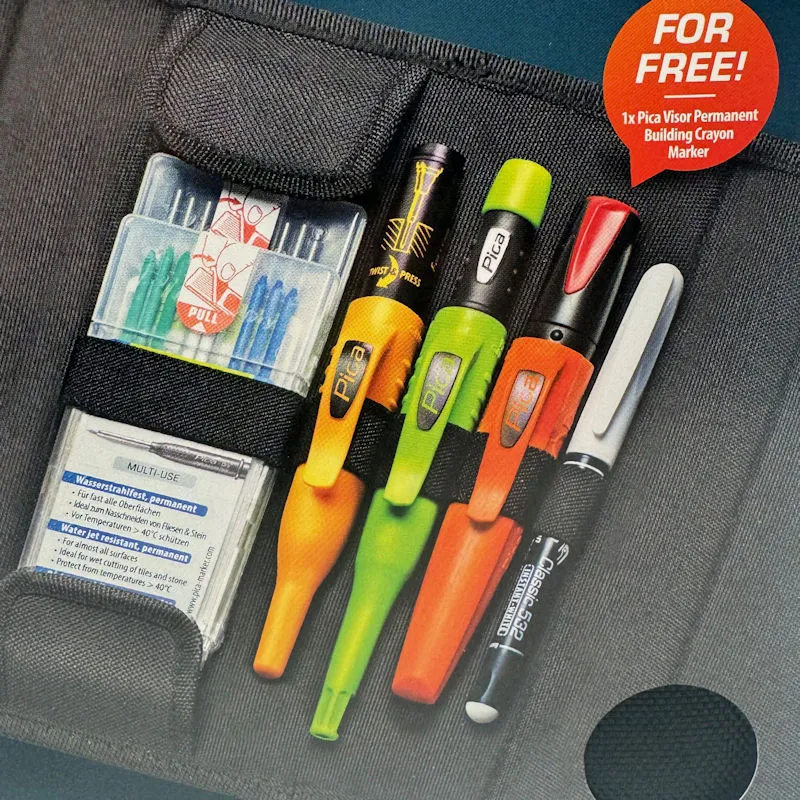 Das praktische und kompakte Markier-Set für Installateure, Fließenleger, Elektriker, Metallnbauer, Schlosser und alle
