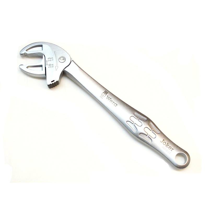 Der verstellbare Joker 6004 deckt alle metrischen und zölligen Abmessungen im jeweiligen Anwendungsbereich ab Automatisches und stufenloses Greifen von Sechskant-Schrauben und Muttern Hebelmechanismus beim Greifen vermeidet Abrutschen und Beschädigungen Schnelles und durchgängiges Verschrauben ohne Absetzen des Schlüssels durch mechanische Ratschenfunktion Rückschwenkwinkel von nur 30° durch Ansetzen in den Eckweitenprismen im Maul Sicher zupacken, nichts beschädigen und eine hohe Arbeitsgeschwindigkeit ermöglichen. Durch die stufenlos und parallel geführten Backen werden mehrere Maulschlüssel-Einzelabmessungen ersetzt. Die benötigte Größe stellt sich beim Ansetzen an der Sechskant-Mutter oder -Schraube stufenlos von selbst ein. Der integrierte Hebelmechanismus klemmt die Sechskant-Schraube bzw. Mutter zwischen den Backen sicher ein, was die Gefahr des Abrutschens und der Beschädigungen deutlich verringert. Für das schnelle und durchgängige Schrauben ohne Absetzen sorgt die Ratschenfunktion. Durch die Nutzung der Eckweiten-Prismen ist ein Rückschwenkwinkel von nur 30° realisierbar. Die Ein-Schenkel-Konstruktion in Verbindung mit der Ratschenfunktion und dem Eckweitenprisma ermöglicht das Arbeiten auch in engen Bauräumen. Der verstellbare Joker 6004 ist das universelle Schraubwerkzeug. Selbstjustierend. Zupackend. Ratschend. Herstellerangaben Wera Werkzeuge GmbH Korzerter Straße 21-25 D - 42349 Wuppertal Deutschland Telefon: 02 02 / 40 45 - 0 E-Mail: info@wera.de